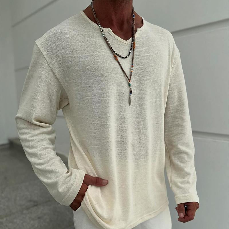 Upgrade your casual wardrobe with this versatile Men's Casual Blended V-neck Long-sleeved T-shirt, perfect for any occasion. This shirt combines style and comfort for the modern man on the go.