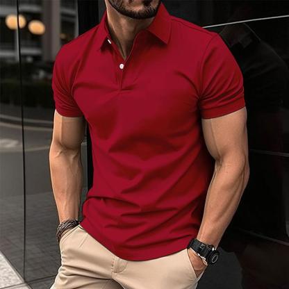 Elevate your casual wardrobe with this versatile and comfortable solid color short-sleeved polo shirt, perfect for adding a touch of classic style to your everyday look.