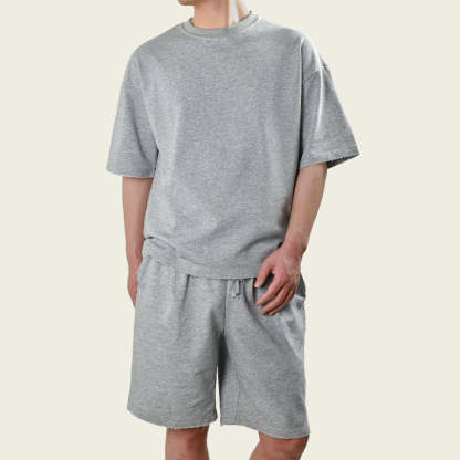 It is a handsome t-shirt and shorts set, thus you don't have to worry about how to match. They are made of cotton blend that is breathable and durable, comfortable to wear for incredible softness, ideal for daily wear, sports, etc. in summer. It's a good way to shape your style and cover all casual occasions without having to own a dozen sets.Men’s fashion loose short t-shirt and shorts set belong to men with a sense of functionality, luxury and comfort. They are finished with distressed edge on the bottom hem and cuffs for a sophisticated look. Loose version gives you a casual and flattering look. Choosing the garment you like is not only a kind of attitude towards life, but also a kind of care for yourself.