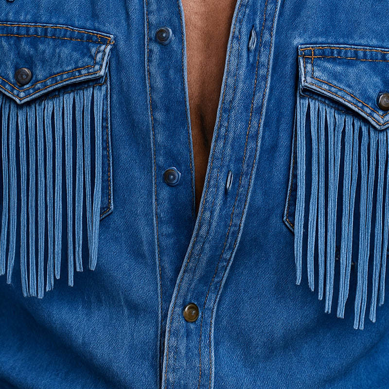 Dare to stand out with this eye-catching shirt that marries traditional craftsmanship with contemporary style. Add the Men's Retro Western Cowboy Tassel Stitching Denim Long Sleeve Shirt to your collection today and elevate your wardrobe with a touch of the Wild West!