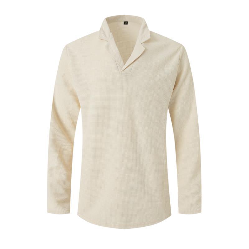 - Top: The long sleeve Cuban collar T-shirt can be worn alone or layered under a jacket for added warmth and style.