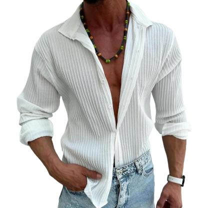 Elevate your casual wardrobe with our Men's Solid Striped Lapel Long Sleeve Casual Shirt, combining classic design with modern comfort.