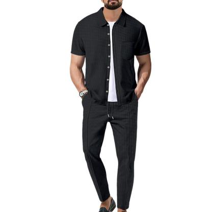 Elevate your casual wardrobe with our Men's Waffle Solid Color Short Sleeve Shirt and Pants Set. Designed for comfort and style, this set is perfect for everyday wear, whether you're lounging at home or heading out for a casual outing.