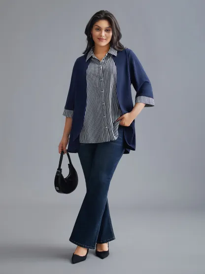 Shirt Collar Patchwork Striped Blouse
